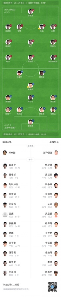 08月31日讯 北京时间19点,中超第23轮,武汉三镇主场迎战上海申花,赛前双方公布首发。武汉三镇首发:14-邵镤亮、2-贺惯、12-廖承坚、23-...